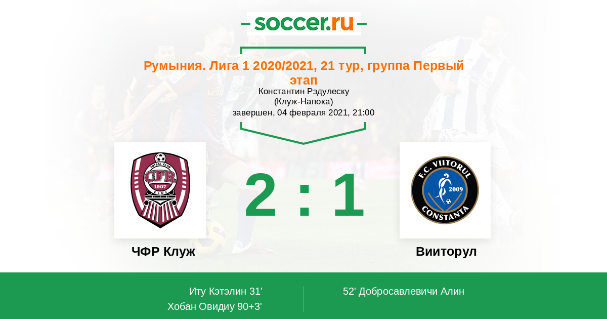 31' (1:0) Иту Кэтэлин (94) (Камора (45))
