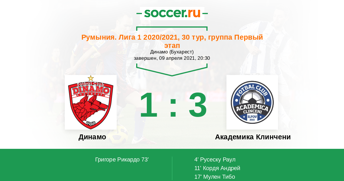 73' (1:3) Григоре Рикардо (27) (Сореску Деян (22))