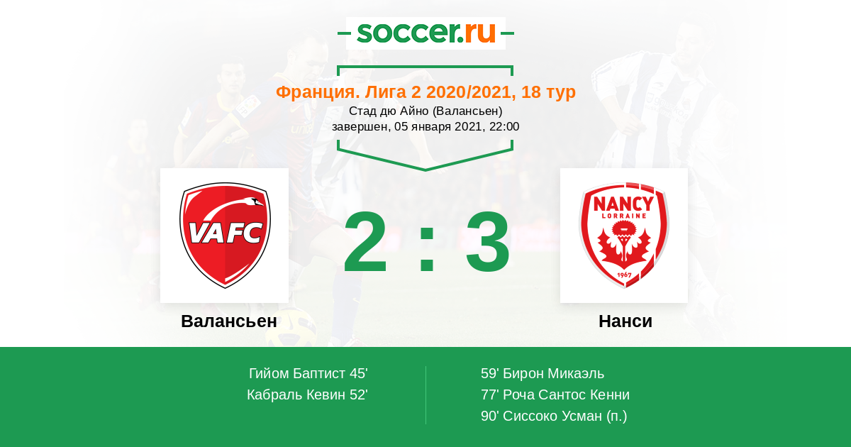 45' (1:0) Гийом Баптист (18) (Дилиберто Ноа (21))