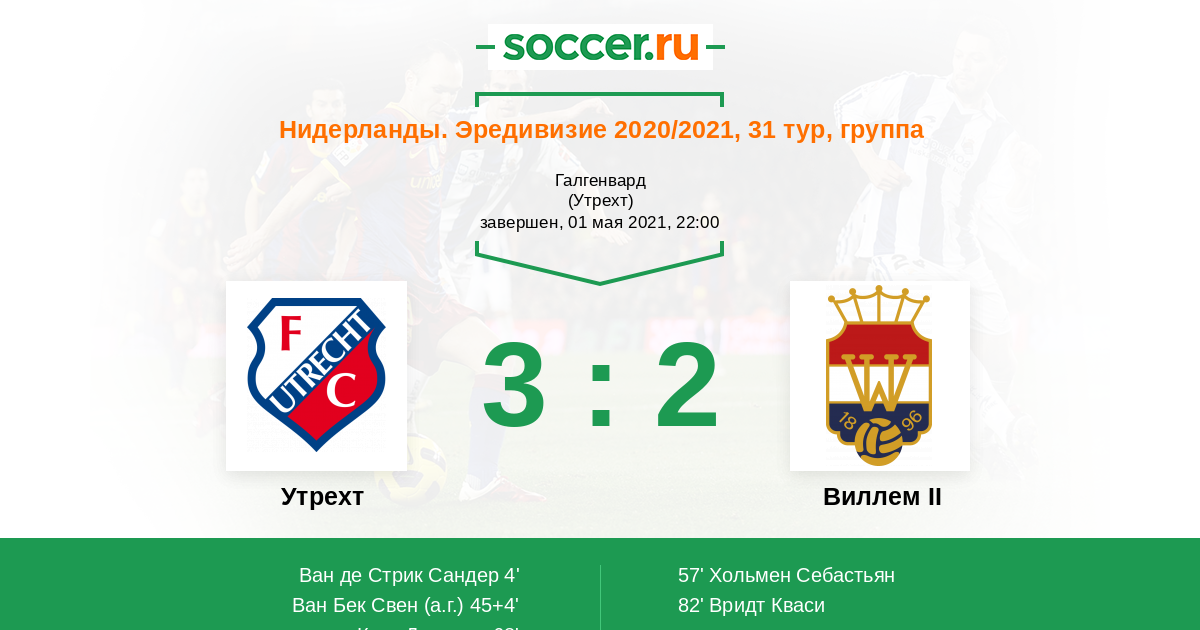 45+4' (2:0) Автогол Ван Бек Свен (32)