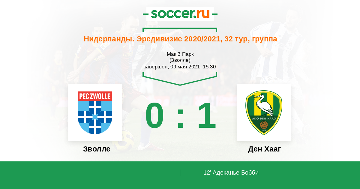 12' (0:1) Адеканье Бобби (24) (Арвейлер Йонас (9))