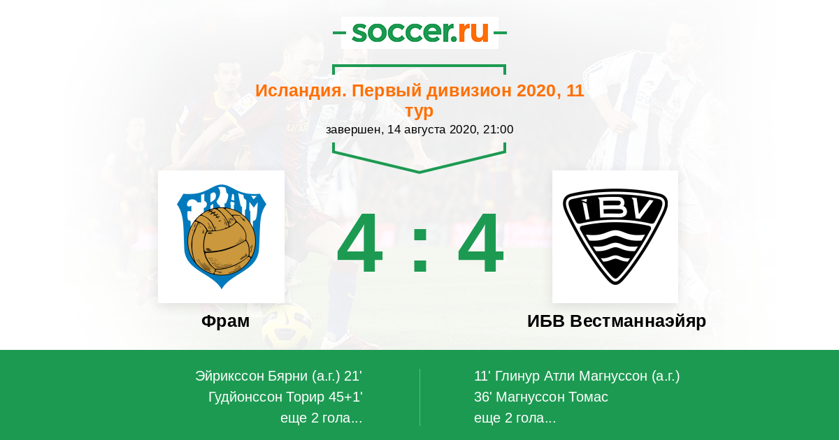 11' (0:1) Автогол Глинур Атли Магнуссон