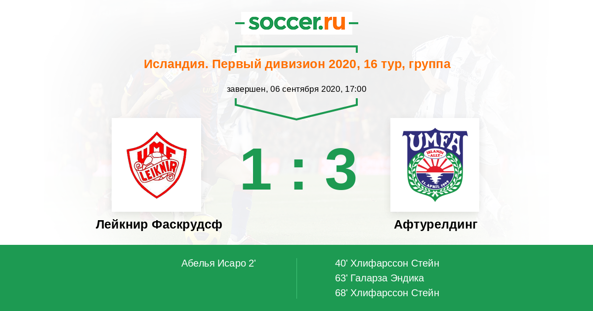 68' (1:3) Хлифарссон Стейн