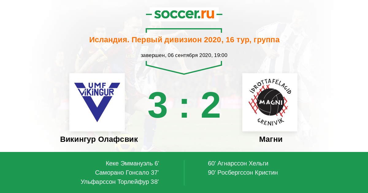 60' (3:1) Агнарссон Хельги