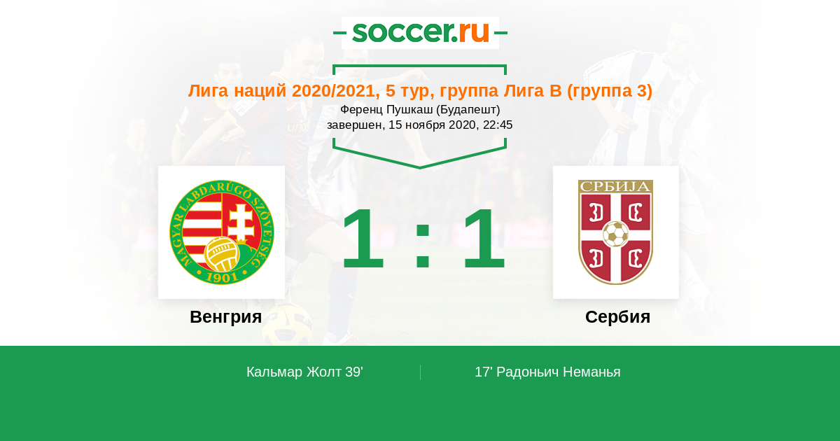 39' (1:1) Кальмар Жолт (13) (Николич Неманья (23))