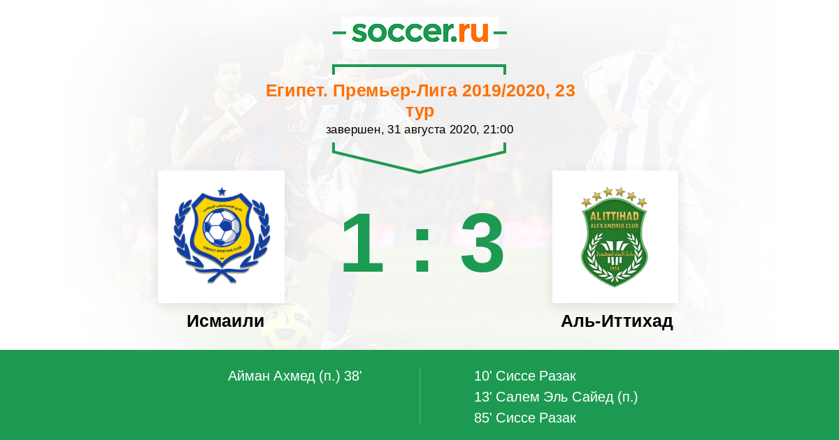 10' (0:1) Сиссе Разак (20) (Махмуд Шаабан (21))