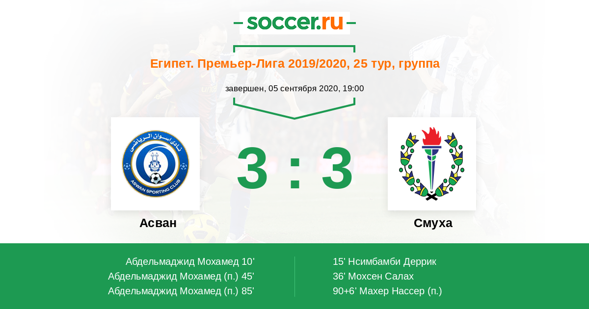 10' (1:0) Абдельмаджид Мохамед (9) (Эль Сагеери Ахмед (25))