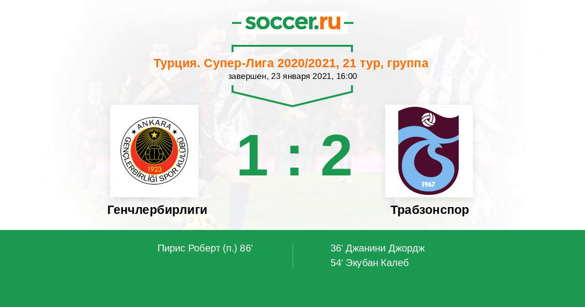 36' (0:1) Джанини Джордж (21) (Экубан Калеб (18))