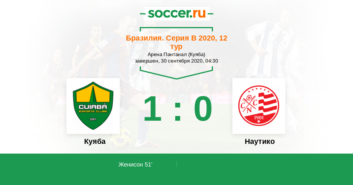 51' (1:0) Женисон (9) (Феррейра Фелипе (7))