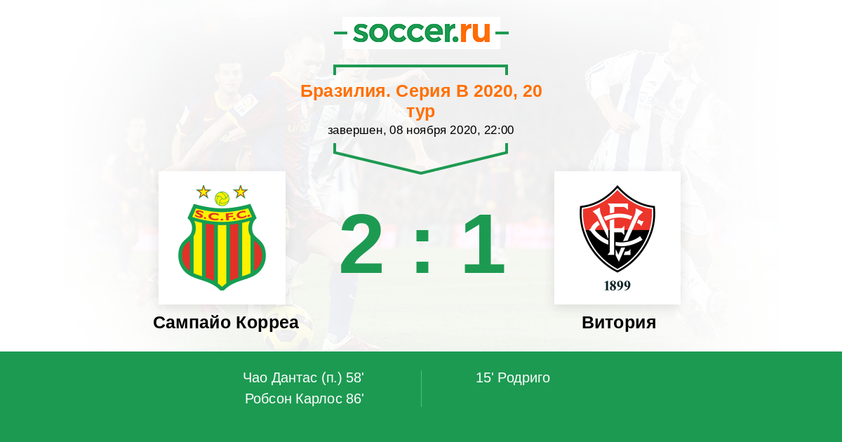 58' (1:1) Чао Дантас (9)