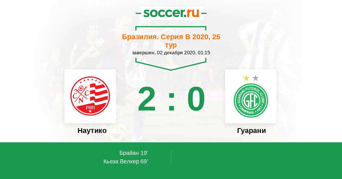 19' (1:0) Брайан (31) (Кьеза Велкер (9))