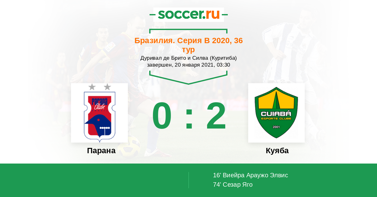 74' (0:2) Сезар Яго (19) (Барбоса Матеус (17))