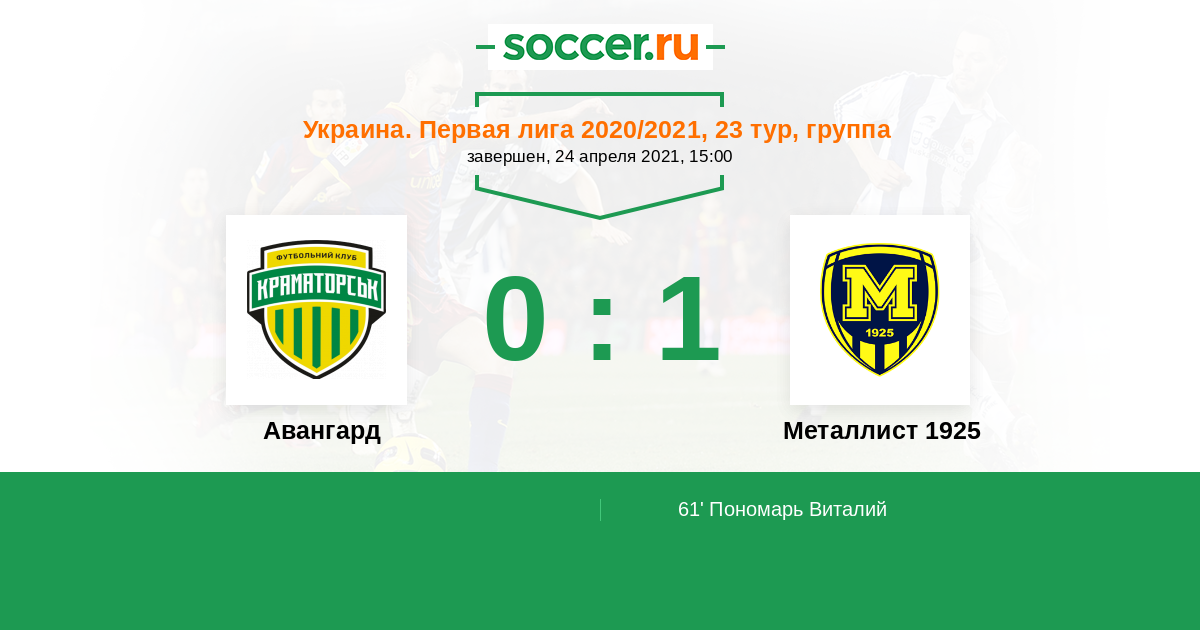 61' (0:1) Пономарь Виталий