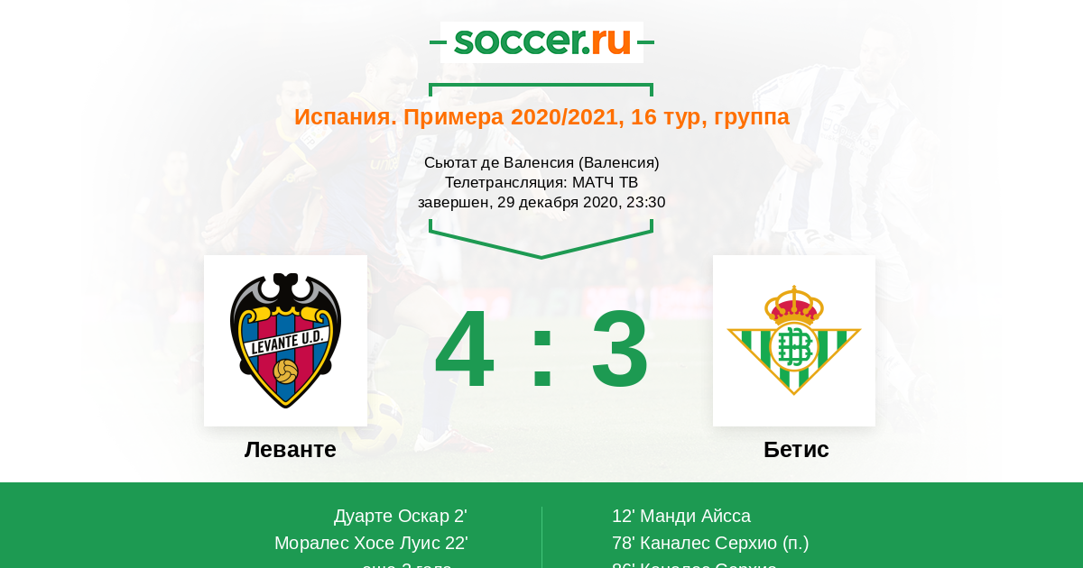 2' (1:0) Дуарте Оскар (6) (де Фрутос Хорхе (18))