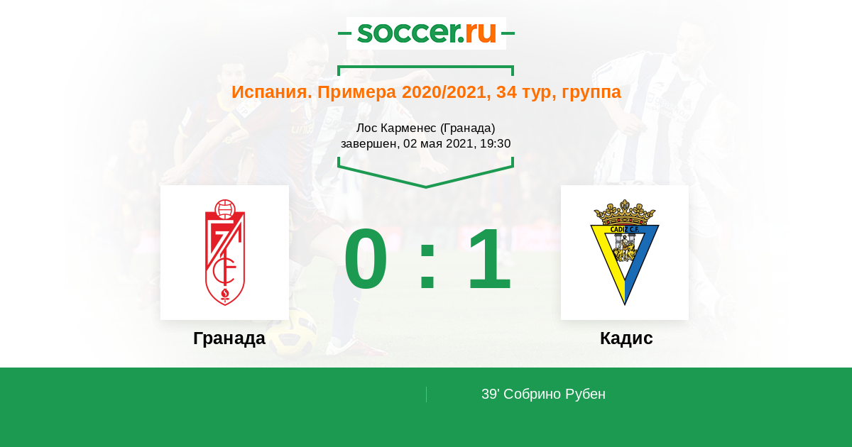 39' (0:1) Собрино Рубен (21) (Негредо Альваро (18))