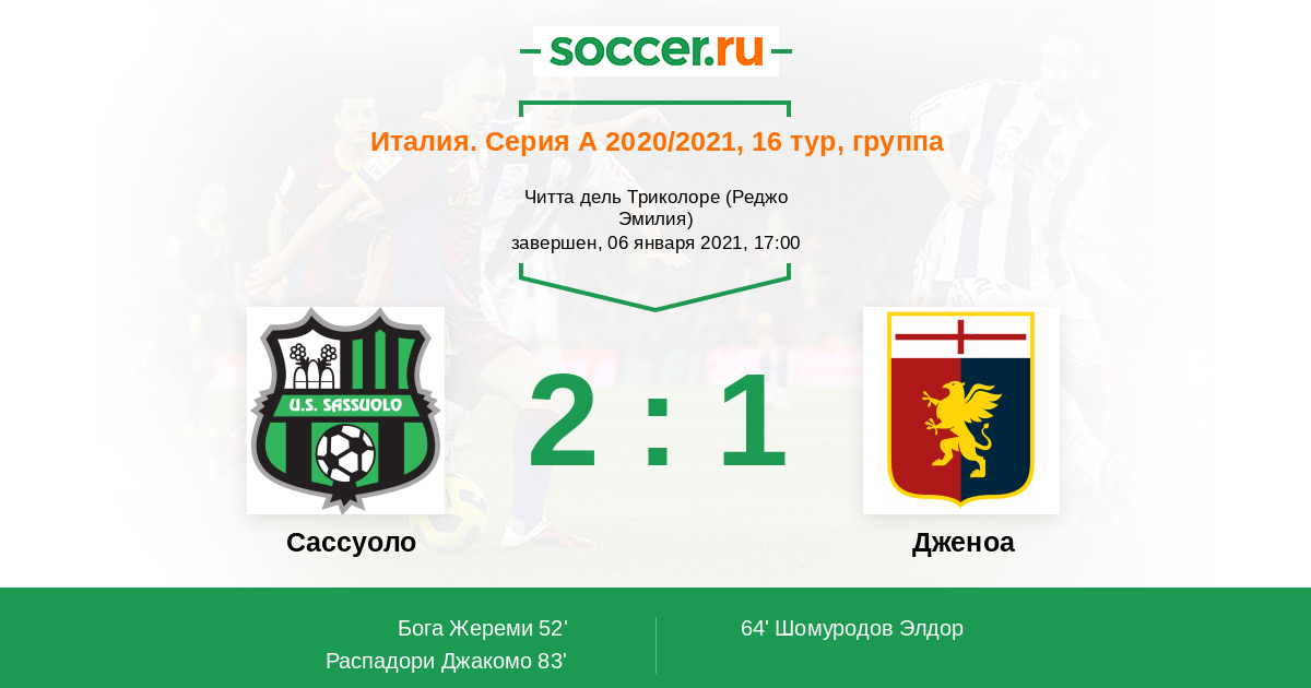 52' (1:0) Бога Жереми (7) (Локателли Мануэль (73))