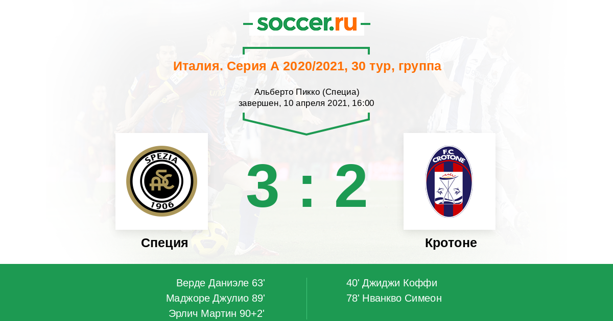 63' (1:1) Верде Даниэле (31) (Марчицца Риккардо (5))