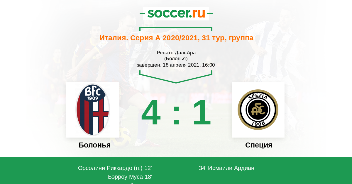 34' (2:1) Исмаили Ардиан (34) (Бастони Симоне (20))