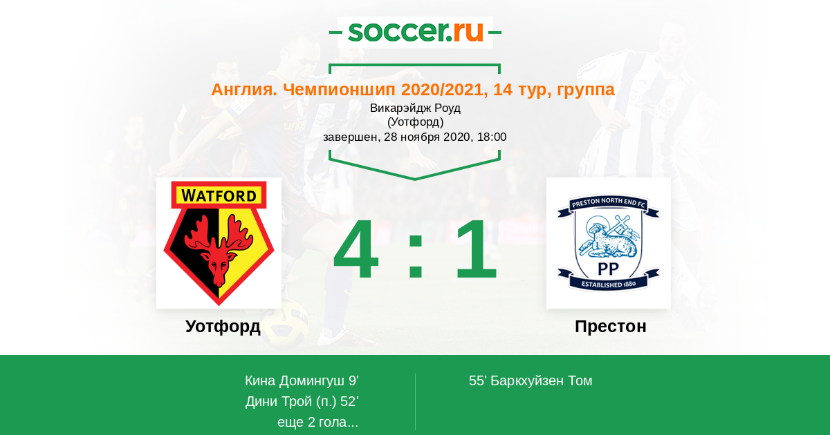 74' (4:1) Жоао Педро (10) (Кэткарт Крэйг (15))