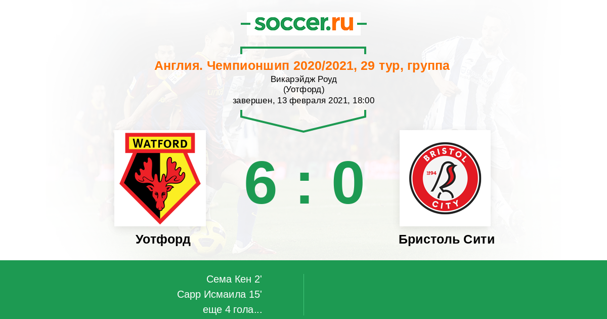 15' (2:0) Сарр Исмаила (23) (Клеверли Том (8))