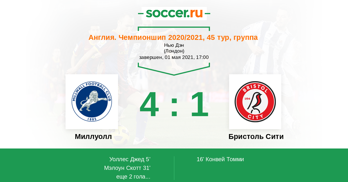 5' (1:0) Уоллес Джед (7) (Мэлоун Скотт (14))