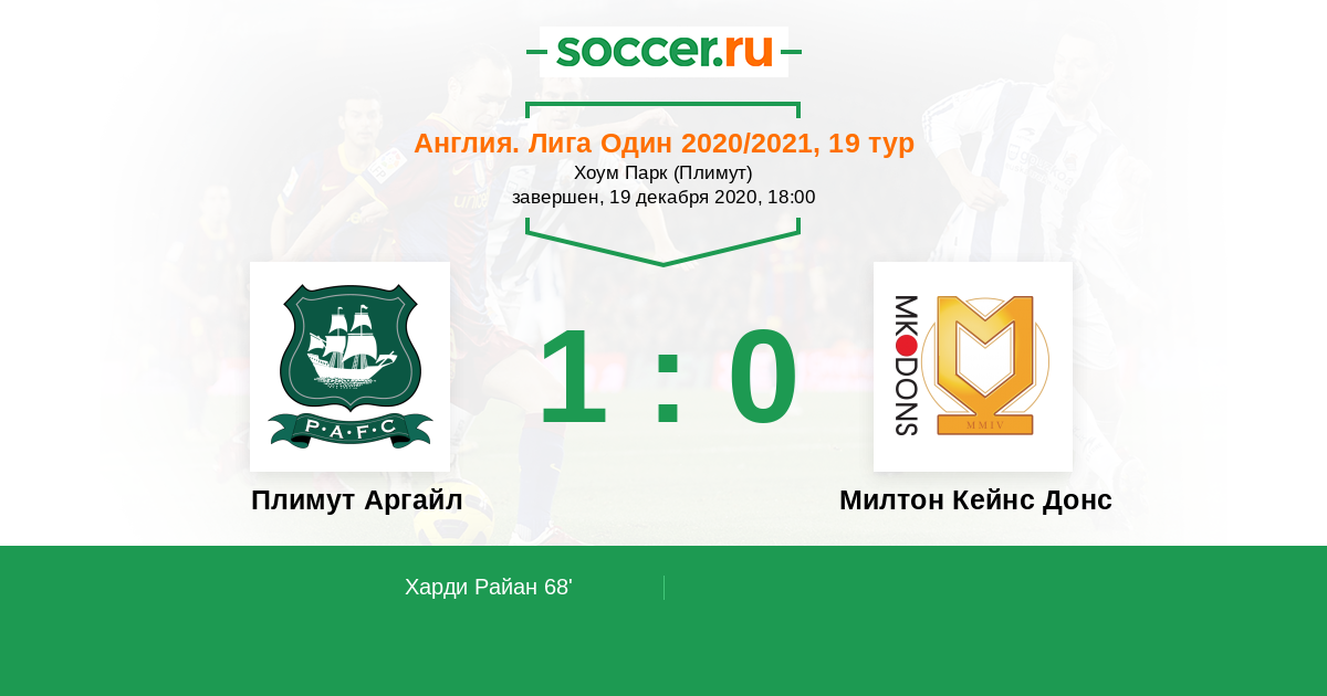 68' (1:0) Харди Райан (9) (Эдвардс Джо (8))