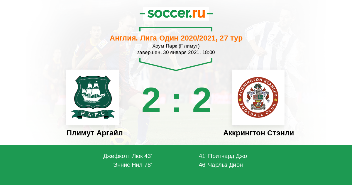 41' (0:1) Притчард Джо (10) (Чарльз Дион (32))