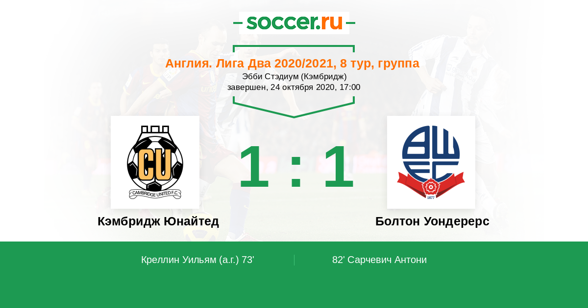 Кэмбридж Юнайтед - Болтон Уондерерс
