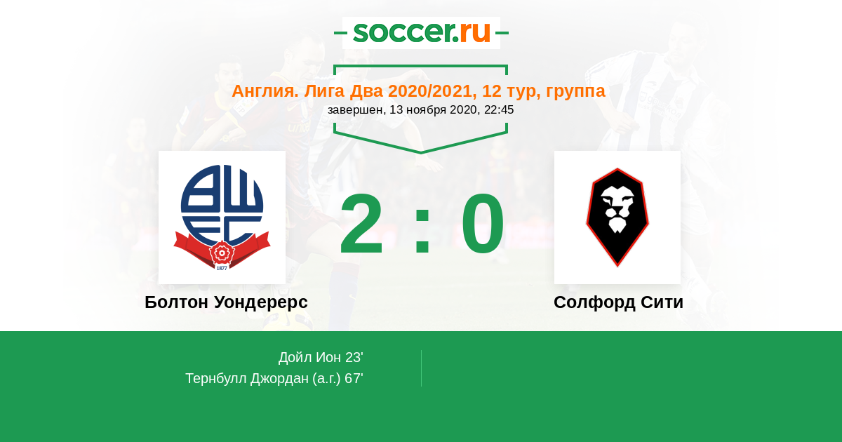 67' (2:0) Автогол Тернбулл Джордан (16)