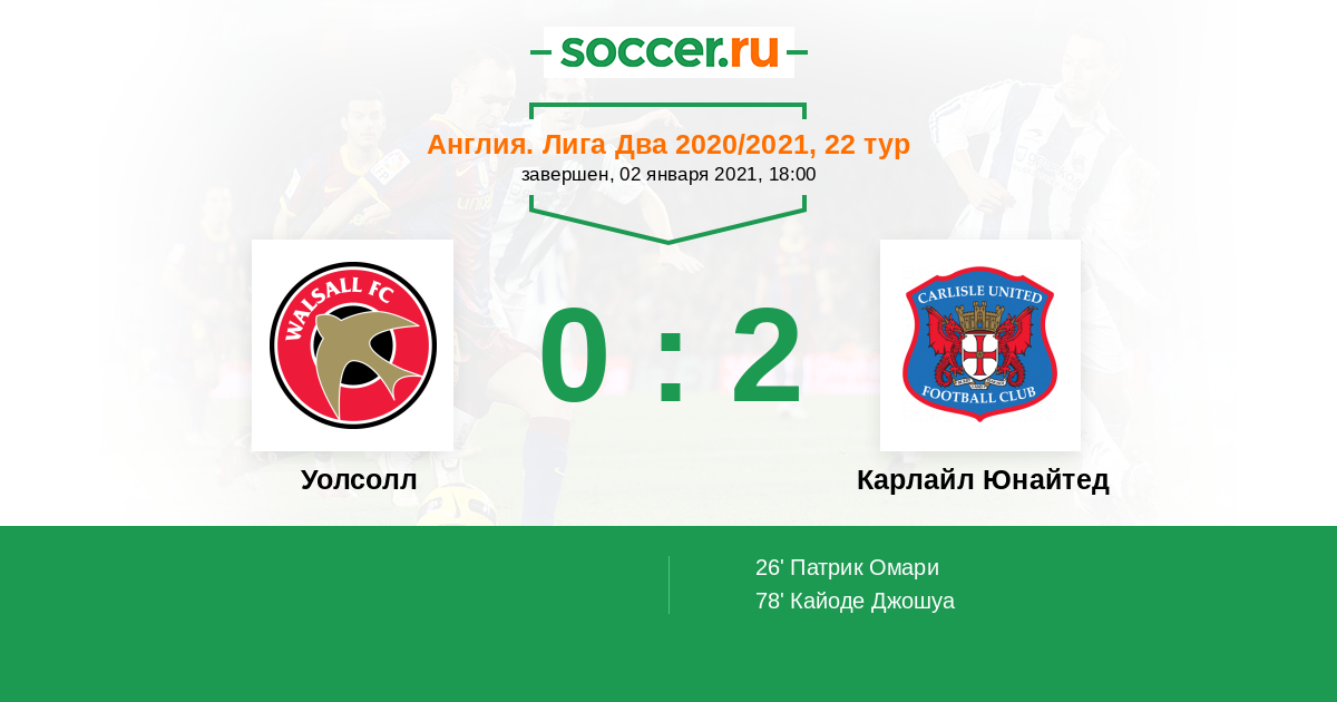 26' (0:1) Патрик Омари (11) (Чартерс Тэйлор (15))