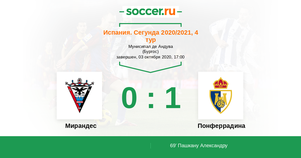 69' (0:1) Пашкану Александру (28) (Курро Санчес (16))