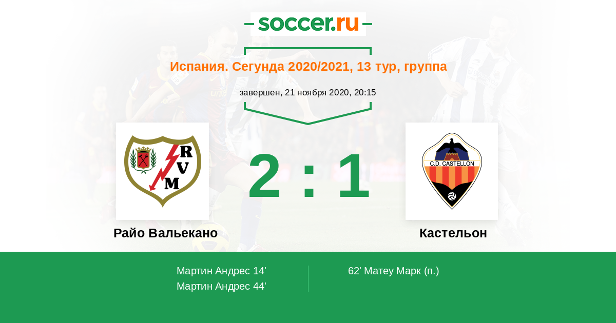 44' (2:0) Мартин Андрес (11) (Гарсия Альваро (18))