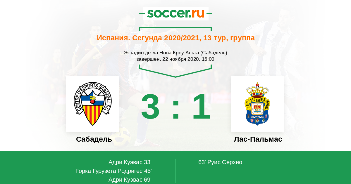 63' (2:1) Руис Серхио (3) (Гонсалес Роберто (24))