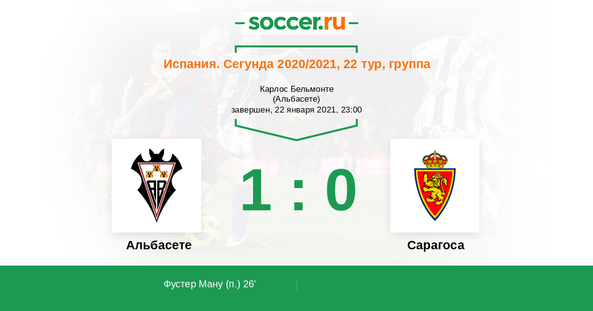 26' (1:0) Фустер Ману (8)