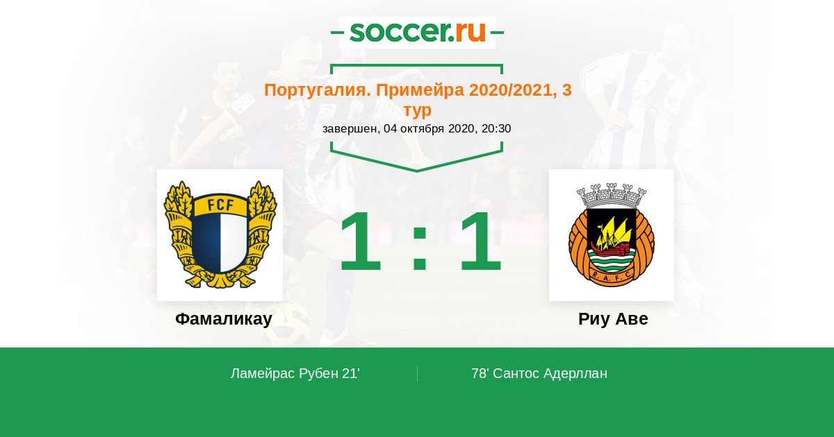 21' (1:0) Ламейрас Рубен (10) (Перейра Хоакин (18))