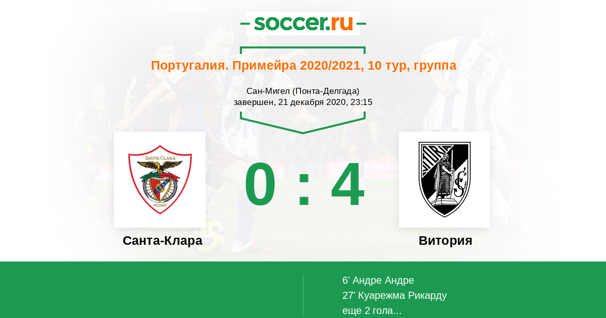 6' (0:1) Андре Андре (11) (Куарежма Рикарду (10))