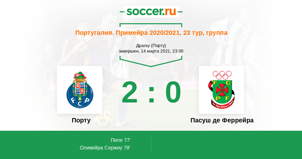 77' (1:0) Пепе (3) (Оливейра Сержиу (27))