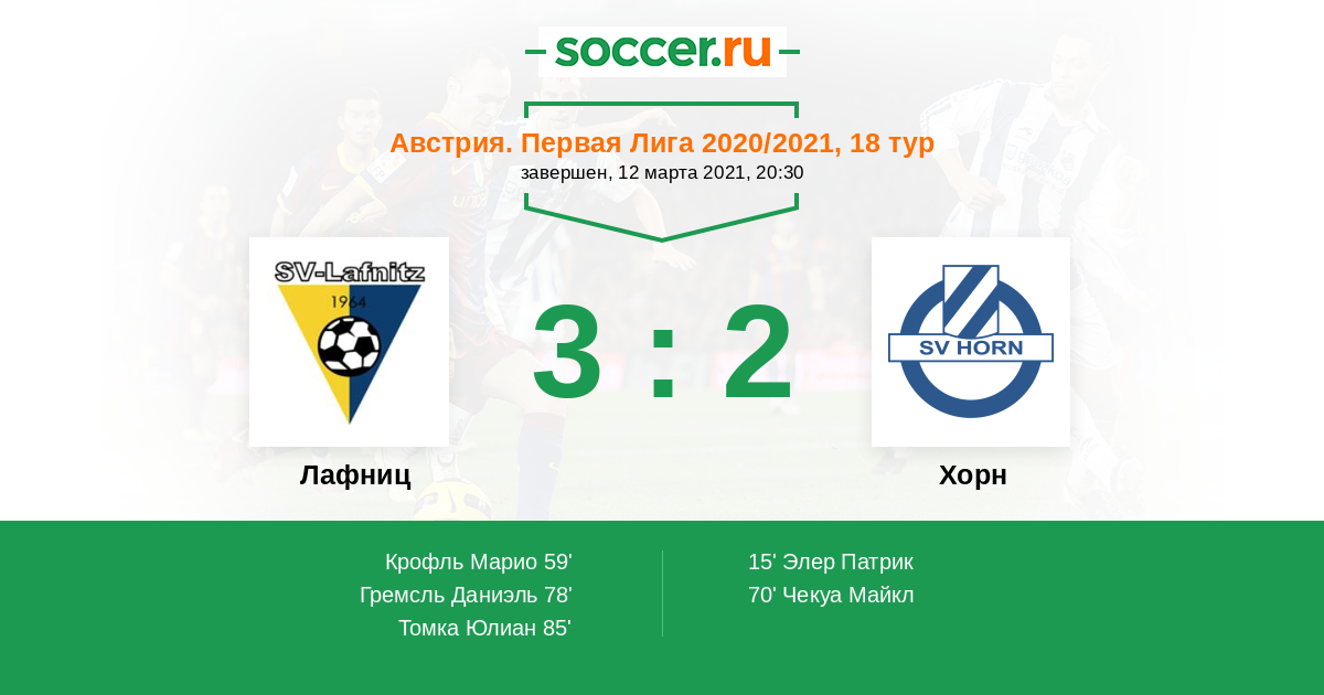 85' (3:2) Томка Юлиан (34) (Крофль Марио (14))