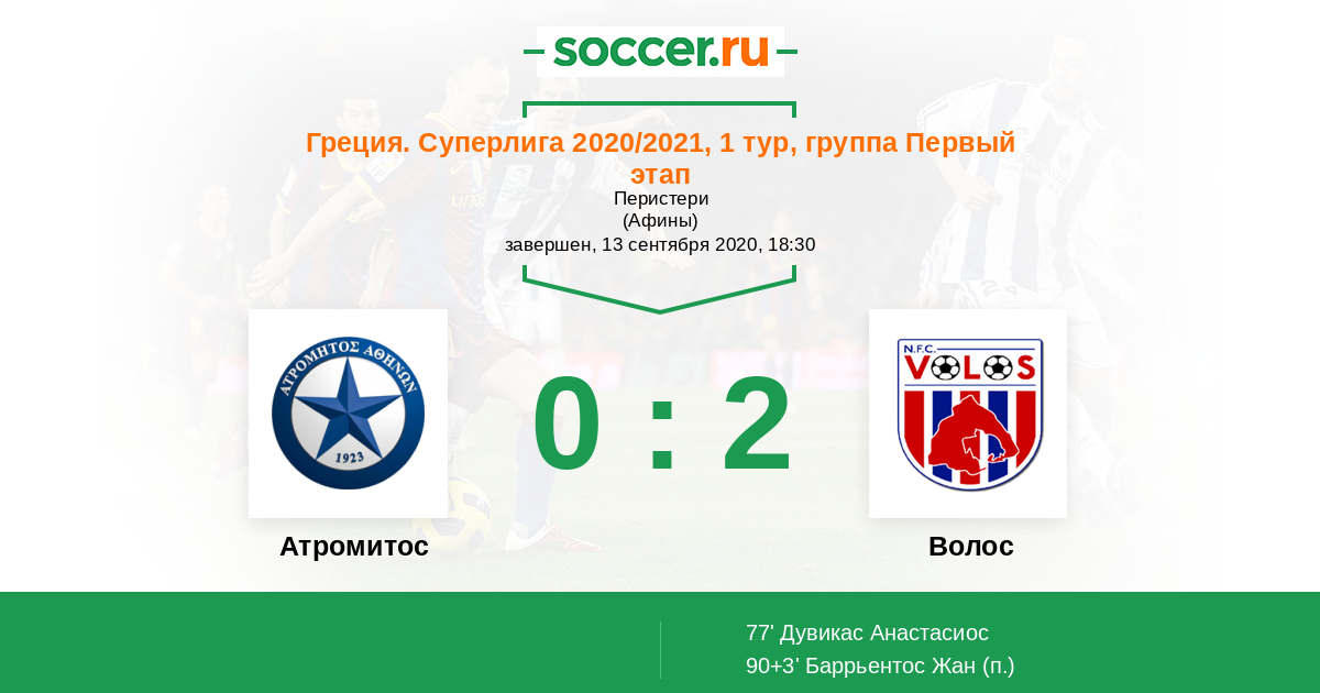 77' (0:1) Дувикас Анастасиос (9) (Феррари Франко (3))
