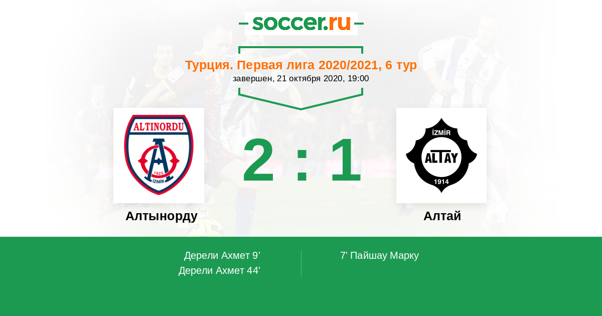 44' (2:1) Дерели Ахмет (10) (Озек Ахмет (9))