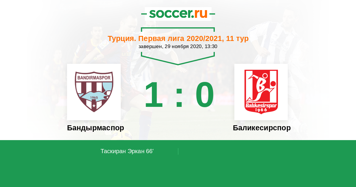 66' (1:0) Таскиран Эркан (11) (Райо (21))