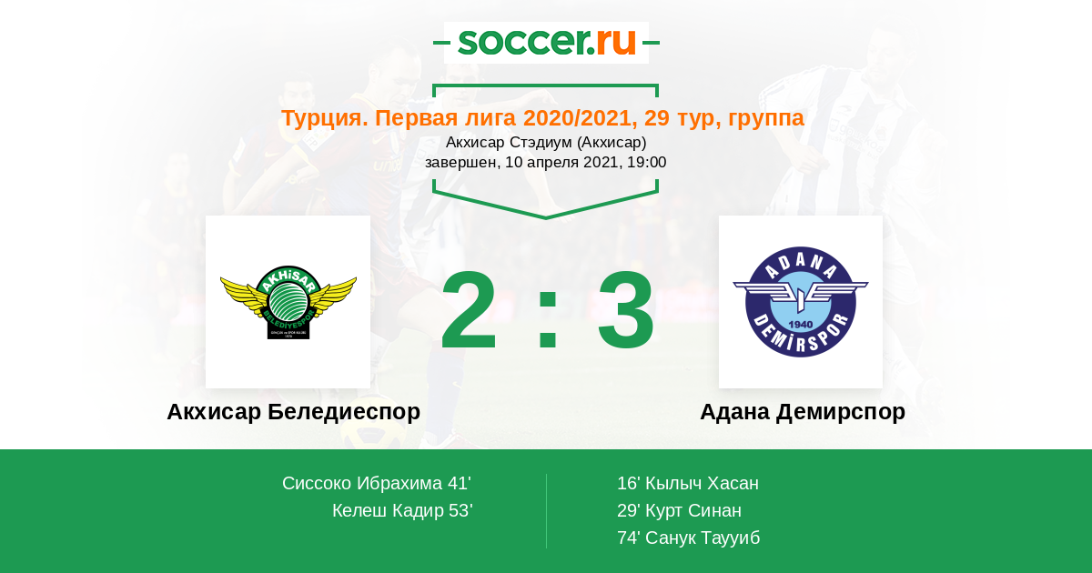 53' (2:2) Келеш Кадир (61) (Орхан Чекдар (10))