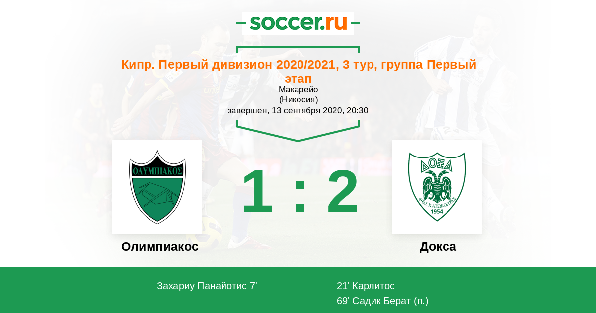 Запасные: 2 Пантич Александар (с 67'), 37 Угу Филипе (с 82'), 26 Адони Захариас (с 89'), 6 Коста Гилсон, 7 Комодикис Андреас, 11 Карлос Луис, 27 Карамоко Абубакар, 31 Параскевас Антреас, 98 Кикаш