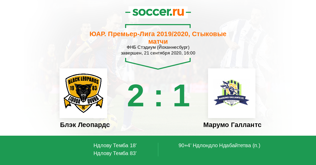 83' (2:0) Ндлову Темба (31) (Модиба Тебого (45))