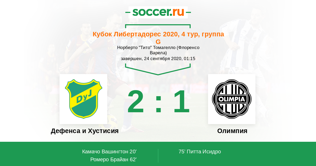 20' (1:0) Камачо Вашингтон (11) (Исналдо Эухенио Орасио (23))