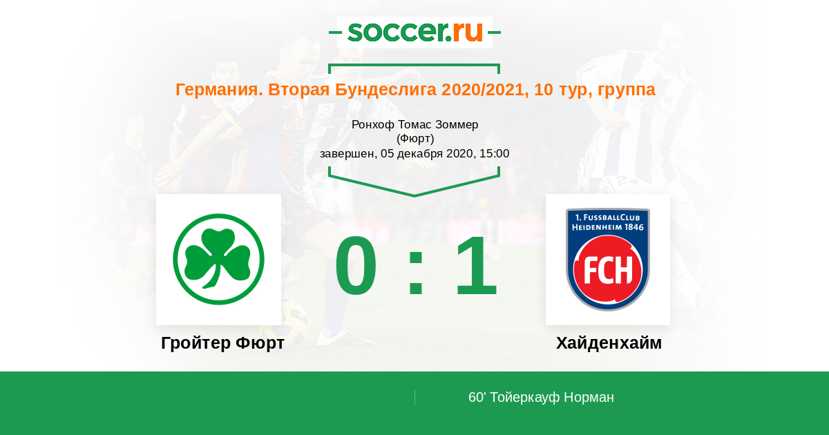 60' (0:1) Тойеркауф Норман (30) (Мор Тобиас (29))
