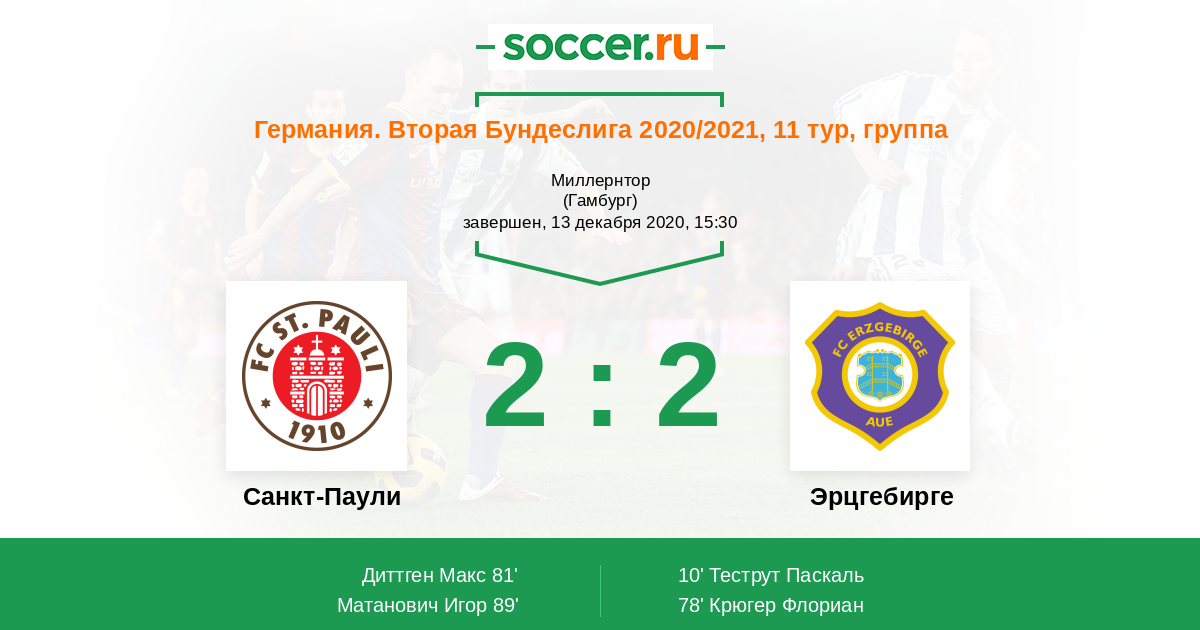 10' (0:1) Теструт Паскаль (37) (Крюгер Флориан (11))