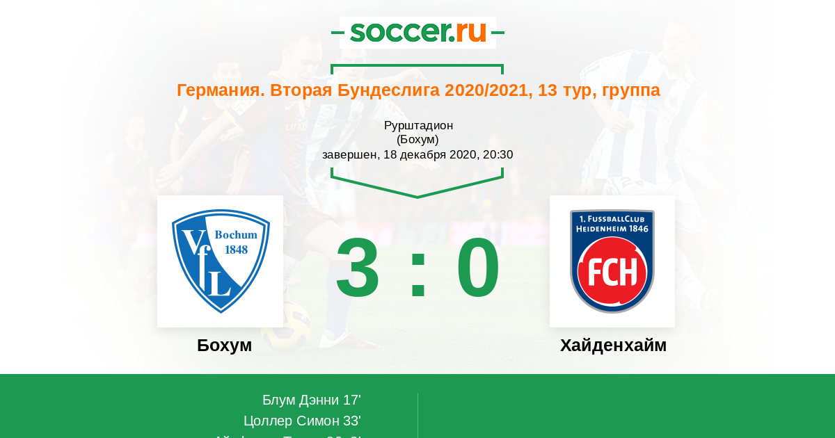 17' (1:0) Блум Дэнни (17) (Цоллер Симон (9))