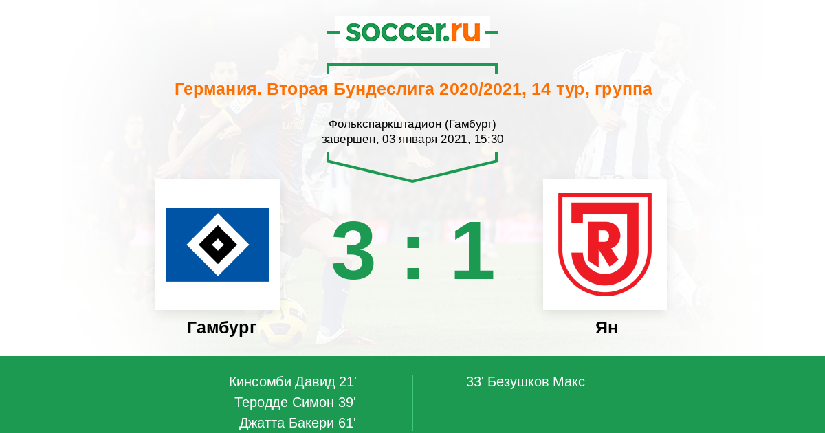 21' (1:0) Кинсомби Давид (6) (Лайбольд Тим (21))