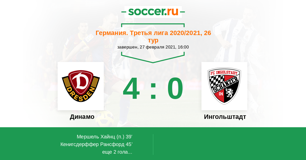 45' (2:0) Кенигсдерффер Рансфорд (35) (Мершель Хайнц (8))
